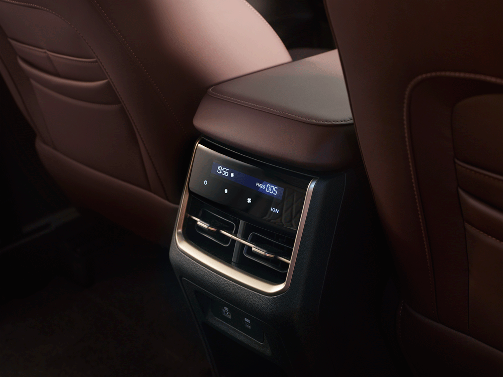 كما تأتي التجهيزات الداخلية والراحة بـ فتحات تهوية للصفين الثاني والثالث، لضمان توزيع هواء مثالي وتبريد مريح لجميع الركاب، وشاشة عدادات رقمية مقاس 10.25 بوصة، وشاشة وسطية تعمل باللمس مقاس 15.6 بوصة، لتلبية كافة احتياجات الاتصال والترفيه، وخاصية الشحن اللاسلكي السريع للهواتف المحمولة، والتحكم الذكي بالصوت.